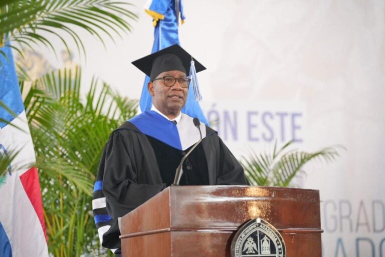 En el marco de la graduación de grado y postgrado celebrada en la UASD CENTRO HIGUEY, el rector de la academia estatal solicita al presidente de la República seguir apoyando a la Universidad.
