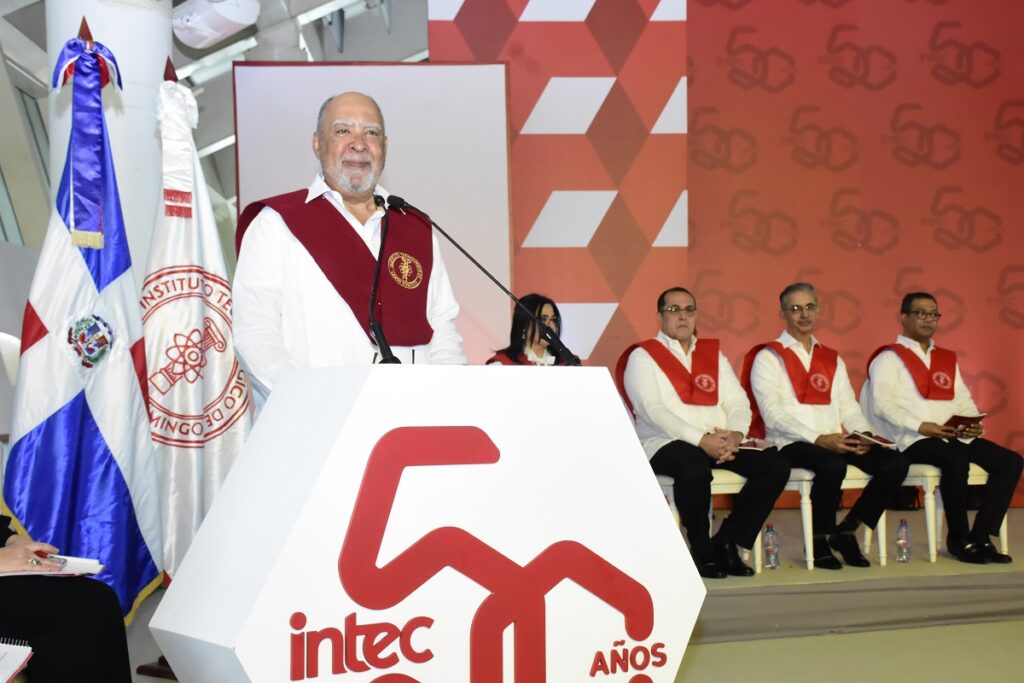 El discurso de bienvenida de la ceremonia, fue pronunciado por el rector Julio Sánchez Maríñez, quien destacó que los médicos egresados del INTEC representan el 18% de los médicos del país, mientras que los egresados de ingeniería son el 40% de los ingenieros de República Dominicana