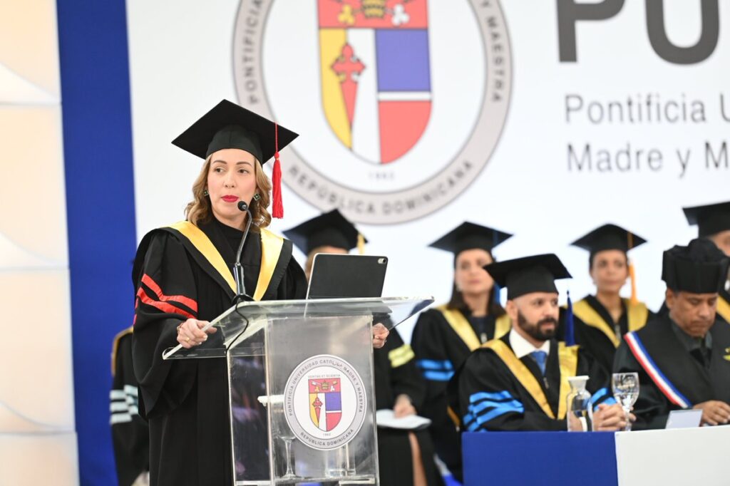 Igualmente el rector destacó el prestigio de la Madre y Maestra, la cual fue reconocida recientemente como la mejor universidad de país en el listado de empresas más admiradas de la Revista Mercado. Además, se encuentra inmersa en un proceso de transformación digital que procura continuar impactando la sociedad con profesionales de alto nivel y formación integral. “Trabajen de manera incansable para ser agentes de cambio y abordar los desafíos sociales, ambientales y éticos de la actualidad”, apuntó el rector.