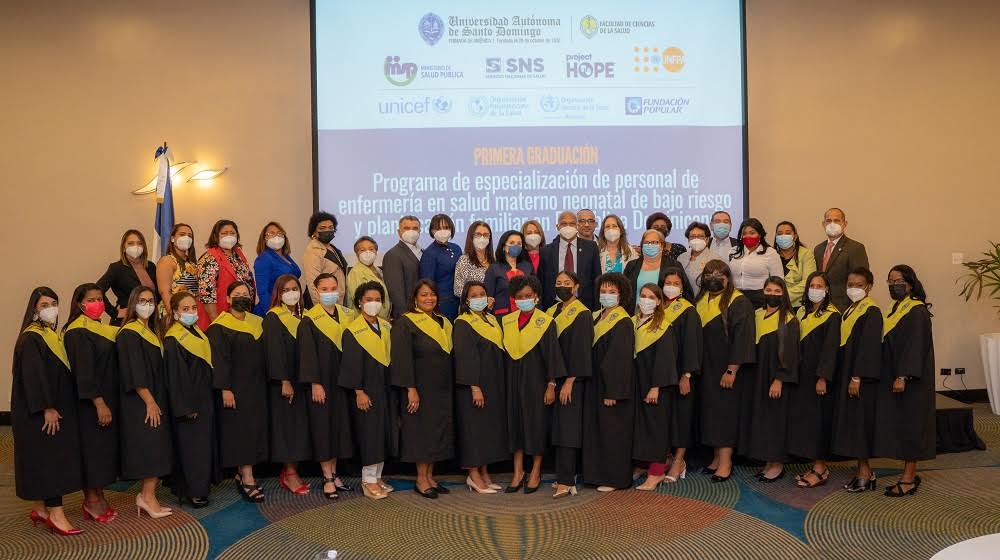 Santo Domingo. Las primeras 21 profesionales egresadas del Programa de Especialización del Personal de Enfermería en Salud Materno Neonatal de Bajo Riesgo y Planificación Familiar en la República Dominicana fueron investidas por la Universidad Autónoma de Santo Domingo (UASD).