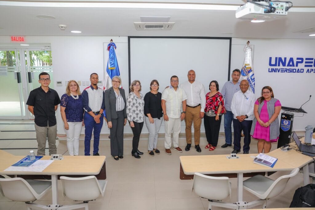 El Dr. Alvin Rodríguez, director de Investigación de UNAPEC y el Dr. Pedro Solares, investigador de UNAPEC, junto a otros investigadores.