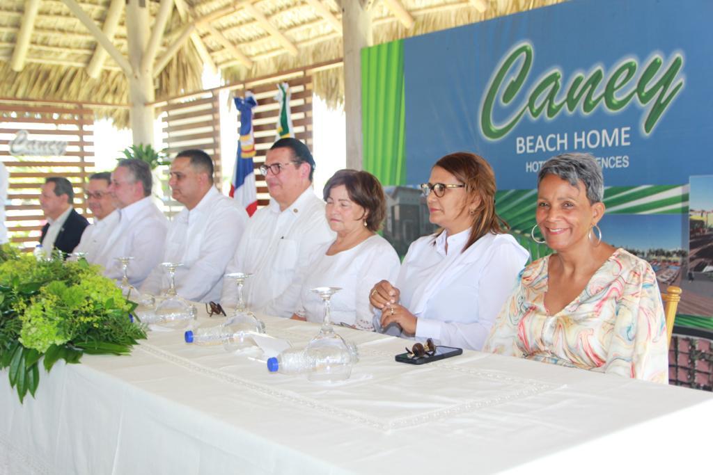 Ejecutivos de Caney Beach Home encabezado por su presidente y vicepresidente ejecutivo arquitecto Juan Tejeda y Gustavo Terrero, junto a las autoridades gubernamentales de la provincia Peravia
