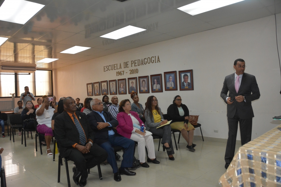 La actividad, dedicada a los egresados, fue desarrollada en el salón multiuso del edificio Eugenio María de Hostos y la encabezó el vicedecano de la facultad, maestro Pascual Leocadio, en representación de la decana, doctora Juana Encarnación.