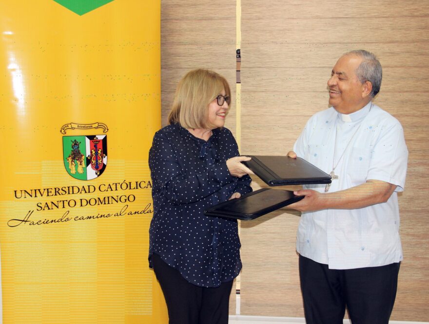 Monseñor Dr. Ramón Benito Ángeles Fernández, Obispo Auxiliar de la Arquidiócesis de Santo Domingo y Rector de la Universidad Católica Santo Domingo (UCSD), y Dra. Rosa Vassallo, Directora Médico del Instituto de Oncología Dr. Heriberto Pieter