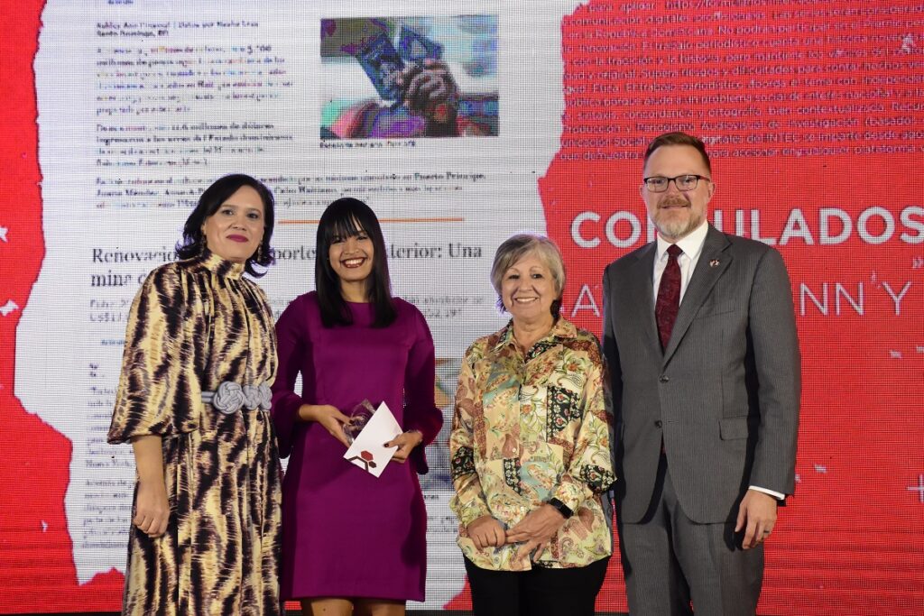 Las periodistas del Listín Diario, Ashley Ann Presinal y Nasha Cruz, fueron galardonadas en la categoría Periodismo de Investigación Digital, mientras que el periódico digital Acento obtuvo el premio al Medio de Comunicación Innovador