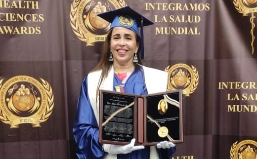 La profesional dominicana recibió el título como parte de las actividades del VII Congreso Internacional Médico Científico y Desarrollo Empresarial -SIISDET, Reencuentro de Dos Continentes – “Unificando Conceptos”, en el Ayuntamiento Teatro Concha Espina –Torrelavega (Cantabria) y la Universidad Europea del Atlántico situada en el Parque Científico y Tecnológico de Cantabria en la ciudad de Santander, España.