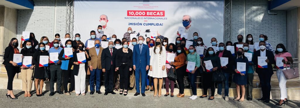 En un acto encabezado por el titular del MESCYT, Franklin García Fermín, la directora de becas internacionales, Roselia Pérez y la representante de la UCJC en la República Dominicana, Karina Narpier, los alumnos provenientes de las provincias Barahona, Bahoruco, Pedernales, Montecristi, Elías Piña, San Juan, Azua, Baní, San Cristóbal, Independencia, Dajabón y el Distrito Nacional, recibieron los certificados de becas que los acreditan como estudiantes de los máster en liderazgo global y marca personal, gobierno y tecnología, así como asesoramiento de imagen en consultoría política.