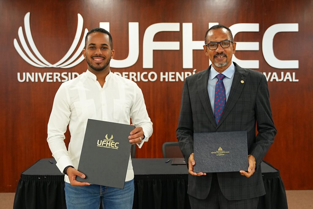 Santo Domingo. El Ministerio de la Juventud (MJ) y la Universidad Federico Henríquez y Carvajal (UFHEC) firmaron un acuerdo para impulsar la educación de los jóvenes dominicanos en áreas como grado, maestría, postgrado, con una cobertura total del cien por ciento.