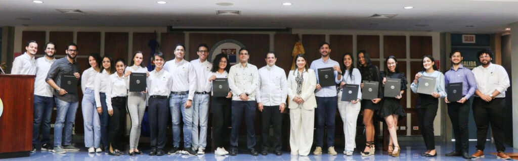 De la facultad de ciencias e ingeniería en el (CSTI), Alicia Cristina Genao García, estudiantes de ingeniería civil. Facultad de Ciencias Económicas y Administrativas del (CSD), Albert Rafael Muñoz Estévez, estudiantes de marketing concentración estrategias digitales, y Daniella Montes de Oca Deschamps, estudiantes de dirección empresarial-negocios internacionales, (CSTI).