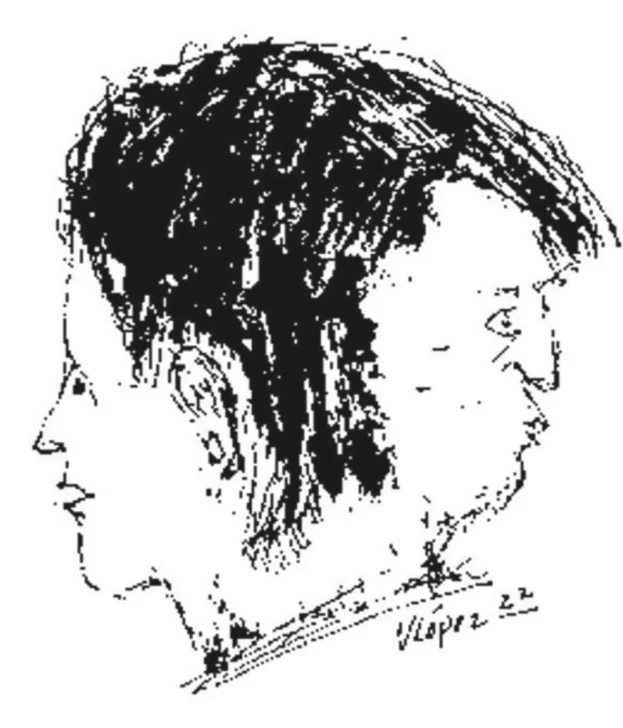 El de la parte posterior era el horrendo, con un ojo más grande, brotado del párpado; el otro ojo era pequeño, con un estrabismo pronunciado. De ese lado tenía una barbita rubia donde retenía la baba viscosa, derramada de la boca de forma permanente. Pero ambos rostros eran autónomos.