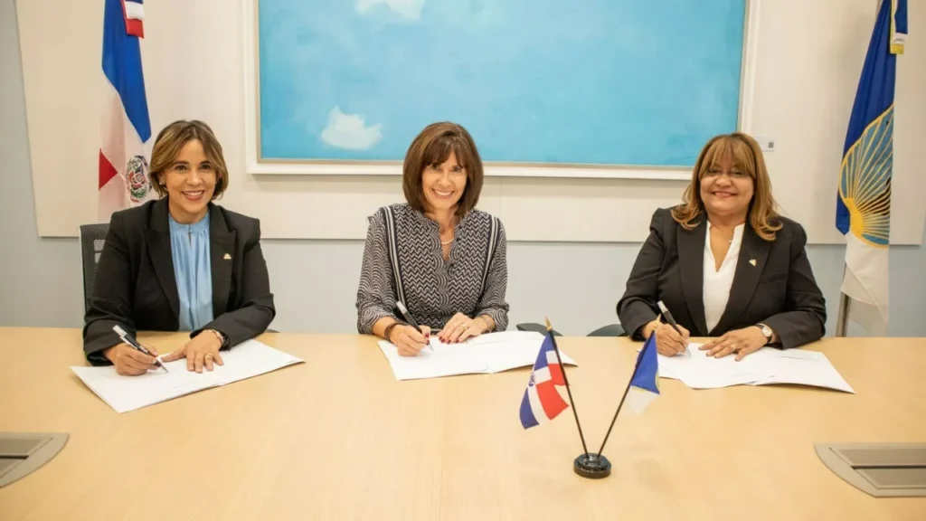 El acuerdo fue firmado por Mercedes Canalda de Beras-Goico, presidenta ejecutiva del Banco Adopem, Eva Carvajal de Toribio, vicepresidenta ejecutiva de negocios del Banco Adopem y Katharina Falkner-Olmedo, representante del Grupo BID en la República Dominicana.