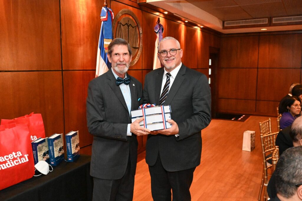 El director de la Escuela Nacional de la Judicatura, Dariel Suárez, el magistrado Napoleón Estévez Lavandier, de la Primera Sala de la Suprema Corte de Justicia, y la jurista Fabiola Medina Garnes tuvieron a su cargo la presentación de la obra, que en sus casi tres mil páginas registra de manera resumida y ordenada las sentencias dictadas por la SCJ y el Tribunal Constitucional (TC), en las materias mencionadas en su título, desde el inicio de las labores de ambas cortes, en 1908 y 2012, respectivamente, hasta diciembre de 2021.