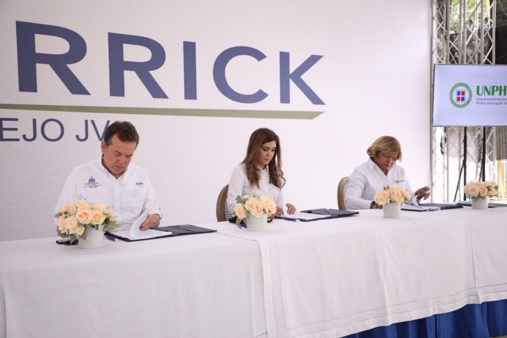 El convenio, que incentiva los encadenamientos productivos y contribuye con el crecimiento de la economía local, fue rubricado por el ministro, Víctor -Ito- Bisonó, la presidenta de Barrick Pueblo Viejo, Juana Barceló, y la vicerrectora de la Universidad Nacional Pedro Henríquez Ureña (UNPHU); Josefina Pepín.