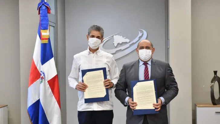 Forma de acuerdo entre el director general de INFOTEP, Rafael Santos Badía y el gerente general de Helados Bon, Luis Fernando Enciso
