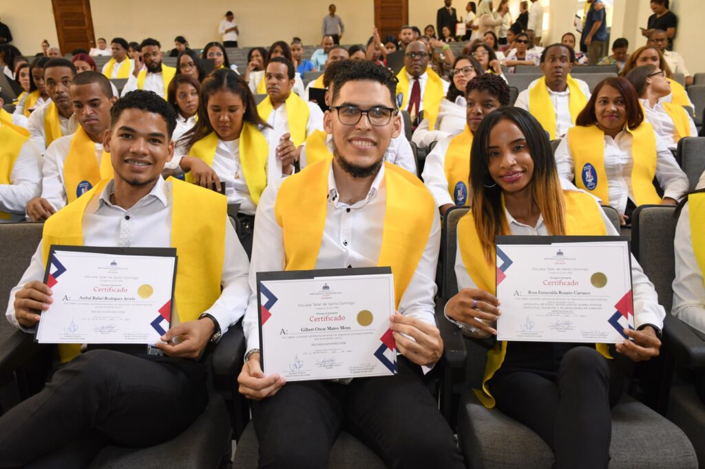 Presentes en el acto de investidura estuvieron la viceministra de Políticas de Empleo, Marie Laure Aristy; la viceministra de Sectores Sindicales y Empresariales, Sabrina De la Cruz Vargas; el director nacional de Empleo, Gustavo Piantini; y todo el cuerpo docente de la Escuela Taller. El acto de graduación se realizó en el Auditorio del Instituto Salomé Ureña de Henríquez de la Ciudad Colonial.