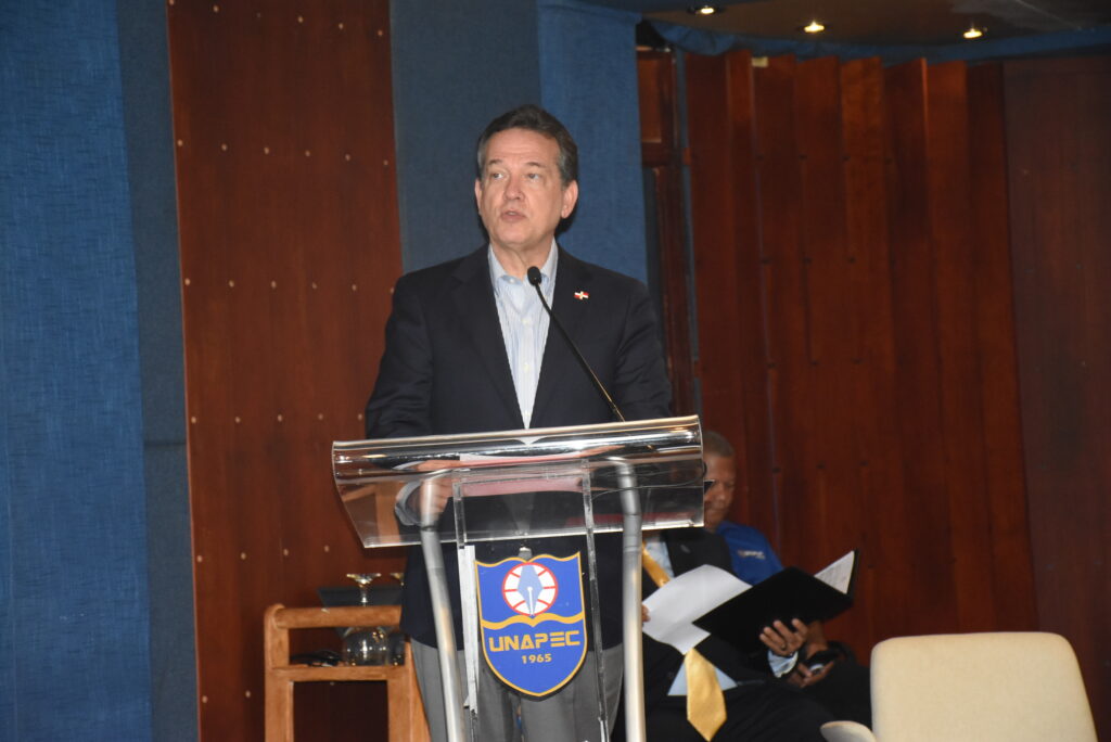 El rector de UNAPEC, Franklin Holguín Haché, resaltó la importancia de la colaboración global en el sector estratégico y agradeció que se escogiera la academia como escenario para promover esta creciente industria.