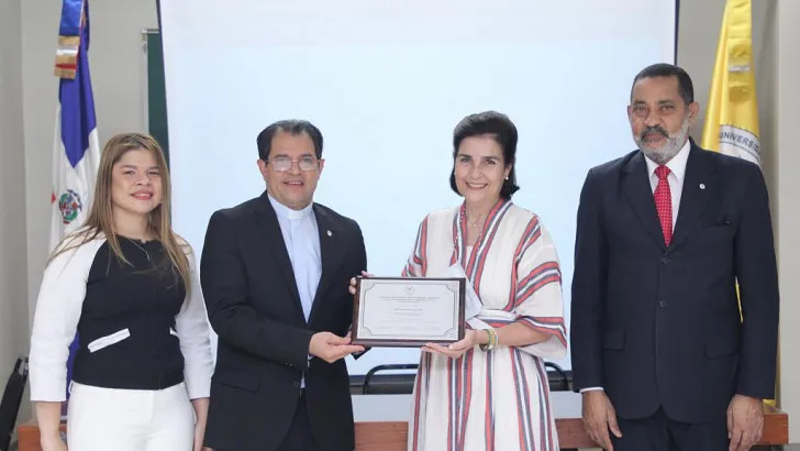 Como parte del evento, la doctora María Amalia León recibió de manos del padre Espinal una placa de reconocimiento por su trayectoria en la enseñanza de la literatura. La conferencia Metodología de Integración de las Artes (MIA)fue celebrada en el Aula Octagonal 3, Edificio A-2.