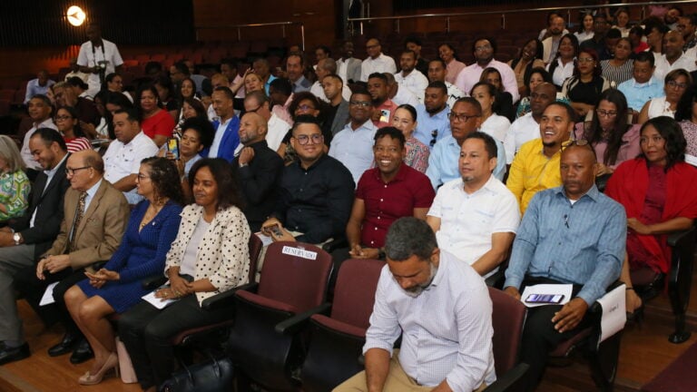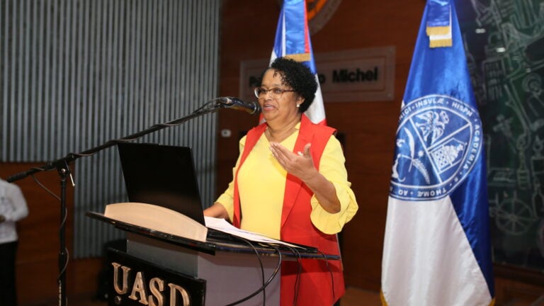 La decana de la facultad, maestra Juana Encarnación, encabezó la actividad realizada en el paraninfo Ricardo Michel, de la Facultad de Ciencias Económicas y Sociales (FCES), junto a la encargada de Postgrado del Inafocam, maestra Belkis Morillo, y la viceministra de Servicios Técnicos Pedagógicos, del Ministerio de Educación de la República Dominicana (MINERD), maestra Ancell Scheker Mendoza.