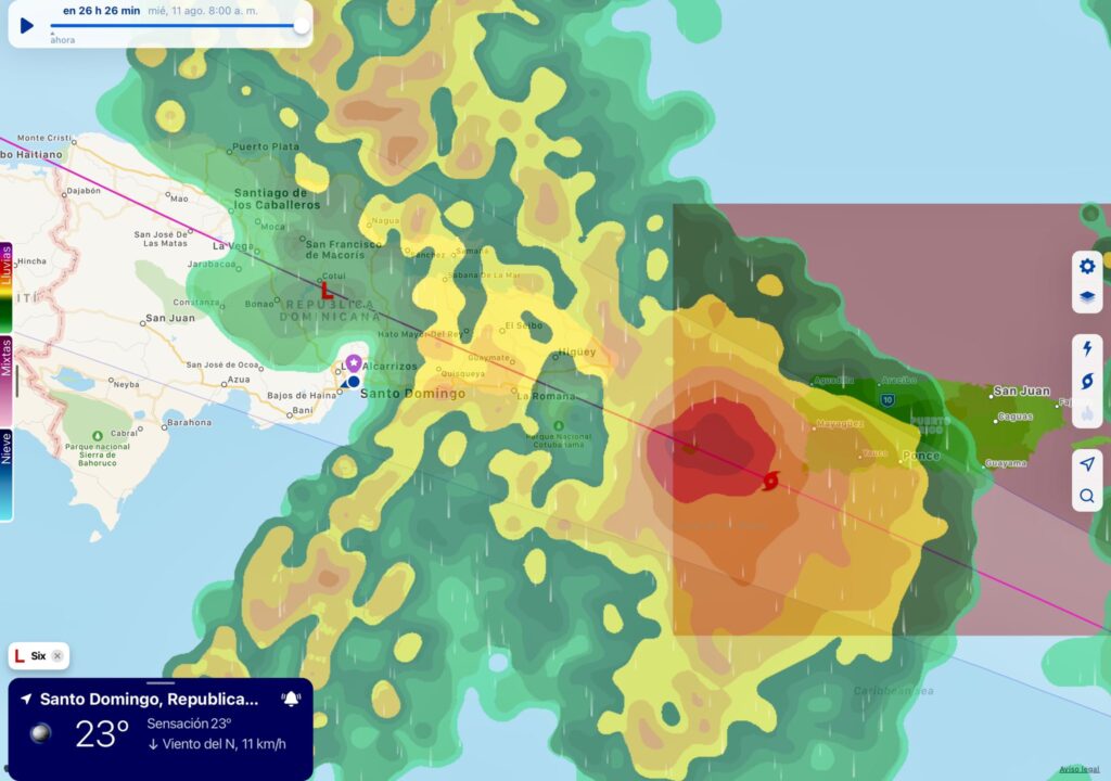 El informe de la Oficina Nacional de Meteorología establece que una onda tropical que actualmente se ubica sobre el suroeste de Haití o el Canal de los Vientos,  en combinación con una vaguada en niveles superiores,  generan aguaceros que pueden ser moderados con tronadas y ráfagas de vientos en el noreste, norte, sureste, cordillera Central, así como, la zona fronteriza.