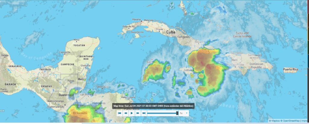 Republica Dominicana. La Oficina Nacional de Meteorología (ONAMET) informa que para hoy domingo bajo la incidencia de un sistema de alta presión que comenzará a dominar las condiciones meteorológicas del país. A pesar de que aún siguen ingresando campos nubosos pertenecientes a la tormenta tropical ELSA que actualmente afecta a Jamaica y Cuba, los cuales podrían dejar lluvias de corto tiempo sobre el país. Para esta tarde, prevemos unos ambientes calurosos con aislados nublados y chubascos de corto tiempo en las regiones noreste, sureste y la Cordillera Central. Entrada la noche pasaremos a un cielo de nubes dispersas y escasas lluvias.