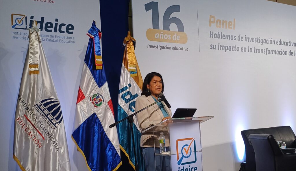 La directora ejecutiva del Instituto Dominicano de Evaluación e Investigación de la Calidad Educativa (Ideice) hizo el pronunciamiento en el discurso del panel “Hablemos de investigación educativa: su impacto en la transformación de la escuela”, que se realizó en la Biblioteca Nacional Pedro Henríquez Ureña, con la participación de expertos en educación, a propósito del 16o aniversario de la institución.