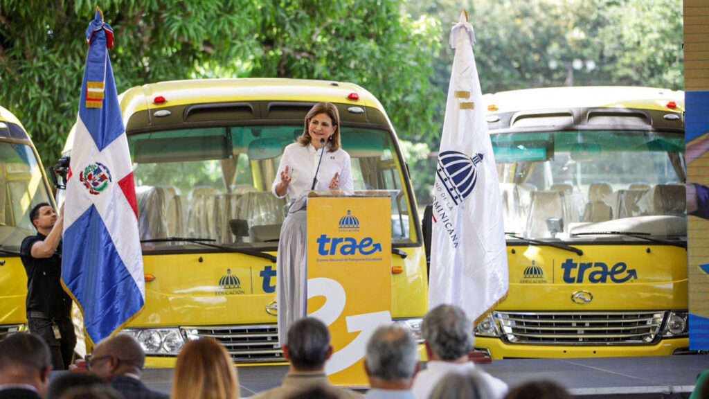 La vicepresidenta de la República, Raquel Peña, entregó 74 autobuses escolares que se distribuirán entre las provincias Duarte, Espaillat y La Vega.