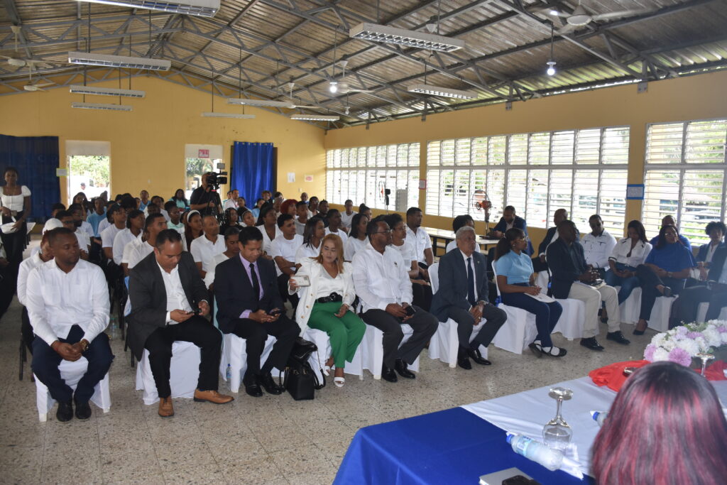 Estuvieron presentes el jefe de Gabinete del MESCyT, Juan F. Medina; la directora del Liceo Politécnico Profesor Eugenio De Jesús Marcano Fondeur, Leydi Alina Hernández; el párroco Juan Carlos Rosario, de la Parroquia Madre Teresa de Calcuta y la egresada del Inglés de Inmersión para la Competitividad 2025, Rosanmy Isabel Reyes.