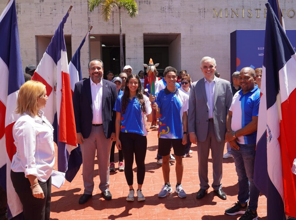 La antorcha fue recibida por los atletas escolares Omar José Marte Rosario e Isabel Fernández Paulino, ambos pertenecientes a la Regional 15 de Santo Domingo, quienes tendrán el honor de iniciar su recorrido por distintas provincias del país, llevando el mensaje de unidad, esfuerzo y superación que promueven los Juegos Escolares.