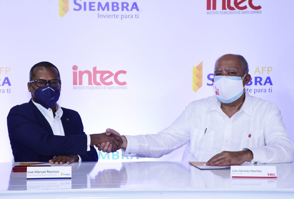 Ambas iniciativas están contempladas en dos acuerdos que fueron rubricados por el rector del INTEC, Julio Sánchez Maríñez y José Reynoso, vicepresidente de Finanzas e Inversiones en AFP Siembra, en un encuentro realizado en las instalaciones de INTEC.