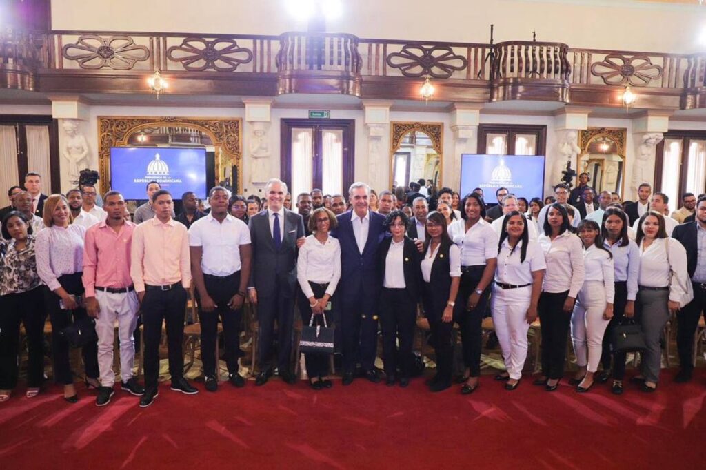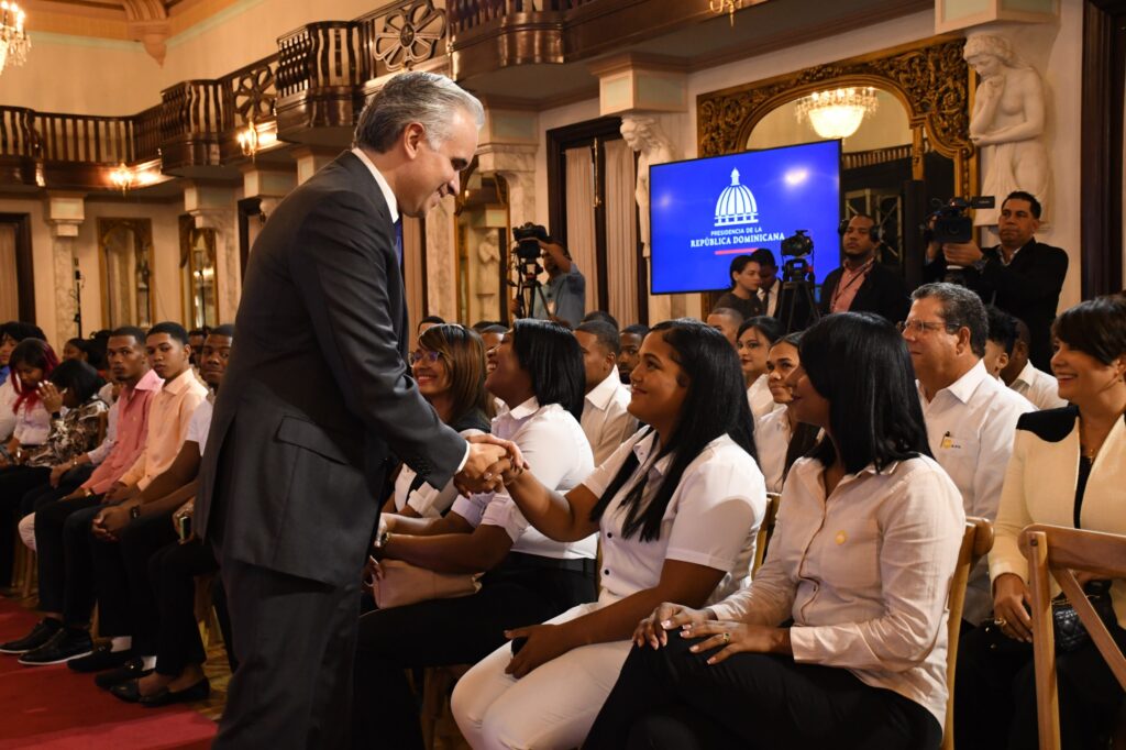 Santo Domingo. El presidente Luis Abinader Corona y el ministro de Trabajo Luis Miguel De Camps García, sostuvieron un encuentro con jóvenes y empresas participantes en el Programa de Empleabilidad Juvenil que lleva a cabo el Ministerio de Trabajo.