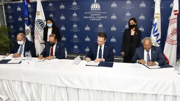 La firma del acuerdo de colaboración interinstitucional estuvo a cargo del ministro de Industria, Comercio y Mipymes (MICM), Víctor Bisonó Haza; el presidente de la Asociación Nacional de Empresas e Industrias de Herrera (ANEIH), Noel Ureña; el director de la Oficina Nacional de la Propiedad Industrial (Onapi), Salvador Ramos, y el rector del Instituto Tecnológico de Santo Domingo (INTEC), Julio Sánchez.
