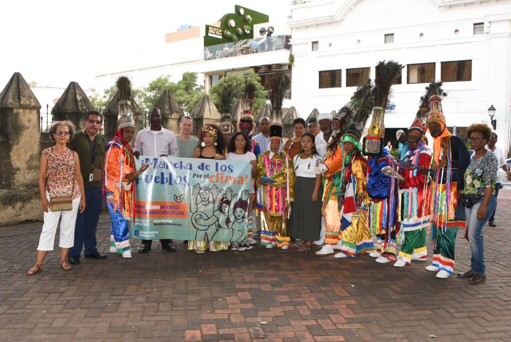 Producto del impedimento de marchar, los representantes locales e internacionales Asamblea Ciudadana por la Justicia Climática de América Latina y el Caribe convirtieron la actividad en una parada pacífica, que incluyó consignas, la exhibición de pancartas y la presentación de los guloyas de San Pedro de Macorís.