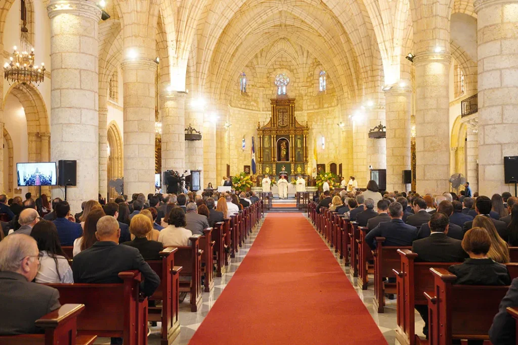 La primera dama, Raquel Arbaje; el señor Marino D. Espinal, presidente del Consejo de Administración del Banco Popular Dominicano, y el señor Christopher Paniagua, presidente ejecutivo de la entidad bancaria encabezaron la eucaristía llevada a cabo en la Catedral Primada de América, Basílica Menor de Santa María de la Encarnación, en Santo Domingo, oficiada por su Excelencia Reverendísima Monseñor Benito Ángeles, obispo auxiliar de la Arquidiócesis de Santo Domingo, ante más de 1,000 feligreses.