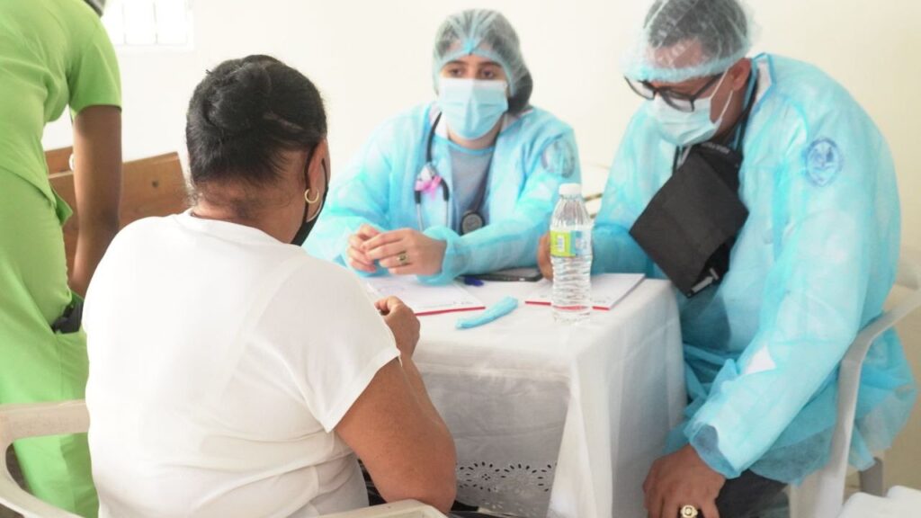 Personal médico del Departamento de Asistencia Social de la Dirección General de Desarrollo de la Comunidad y la Regional Nordeste de Salud Pública, en momentos que dan asistencia a ciudadanos durante un amplio operativo médico en los sectores San Antón de Vista El Valle y El Espínola I, II y III del Municipio San Francisco de Macorís, provincia Duarte