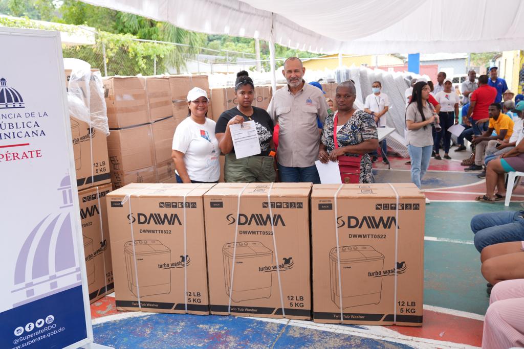 A través de la coordinación del Programa Supérate y del Instituto Nacional de Bienestar Estudiantil (INABIE) fueron distribuidas neveras, estufas, camas, lavadoras, muebles y otros enseres para apoyar a familias afectadas por el disturbio tropical del pasado sábado 18 de noviembre.