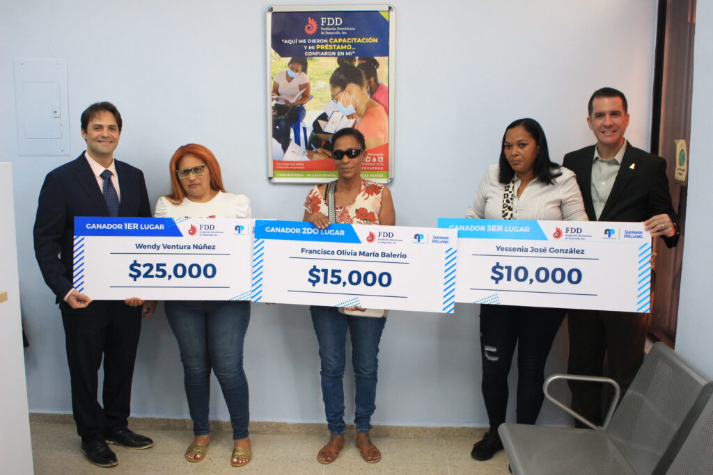 San Francisco de Macorís, Rep. Dom. En una discreta y sencilla actividad, la Fundación Dominicana de Desarrollo (FDD) y Acabados y Pinturas, a través de su marca Sherwin-Williams, reconocieron a las ganadoras del concurso «Pinta tu Casa Bonita,» una iniciativa que buscó mejorar la calidad de vida de las familias participantes a través de la renovación de sus hogares.