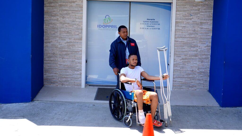 Empleado lesionado que recibe los beneficios delInstituto Dominicano de Prevención y Protección de Riesgos Laborales (IDOPPRIL).