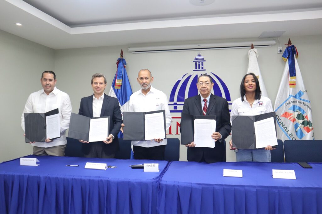 Además de Castro, firmaron este acuerdo Marco Enrique Cabral, gerente general de Impresora de Yaque/ Elopak Caribe, por Coopfedegano, Yesenia Rodríguez; José de Jesús Ovalle Polanco por Agampta y David Matías por Frutos Ferrer.