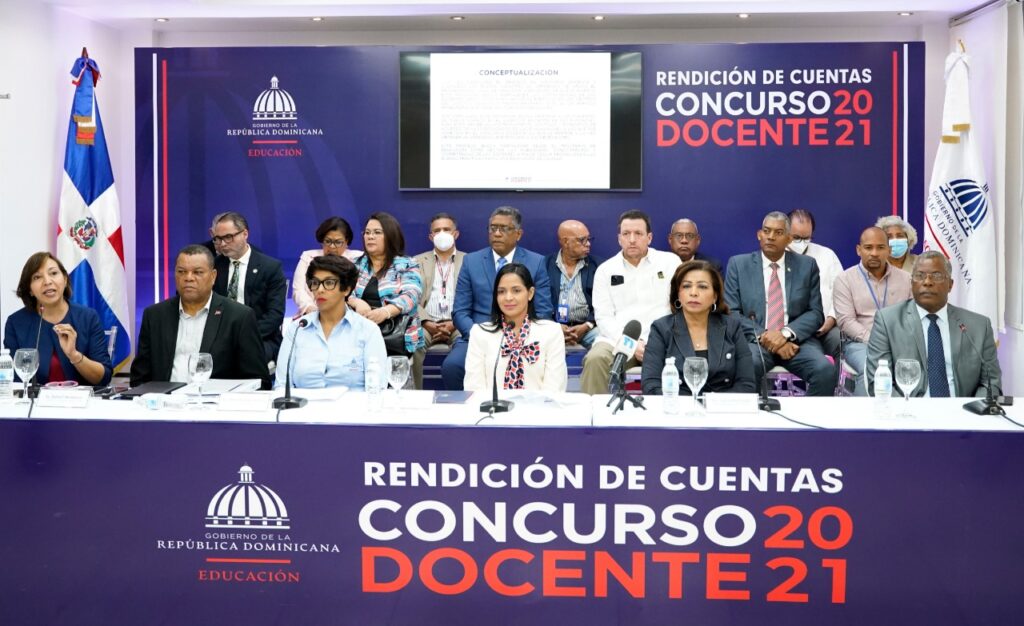 La rendición de cuentas del Concurso de Oposición Docente fue dada a conocer durante una rueda de prensa encabezada por los viceministros Rafael Alcántara, coordinador de la comisión, Ligia Pérez y Julissa Hernández, la directora de Gestión Humana, Dilia Sthepanie Ubiera.