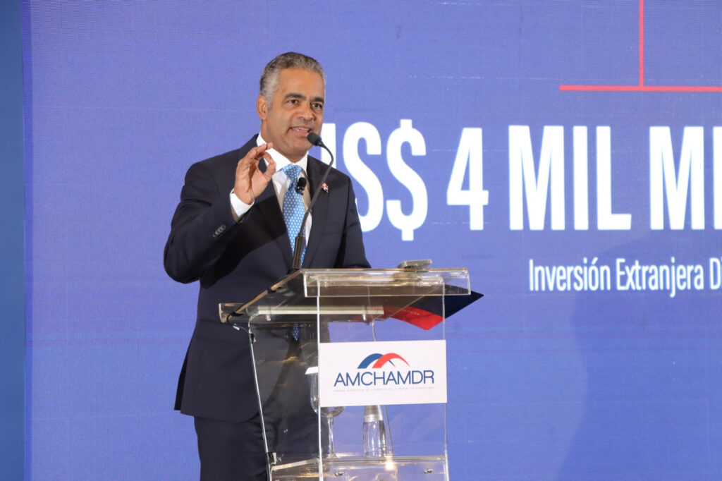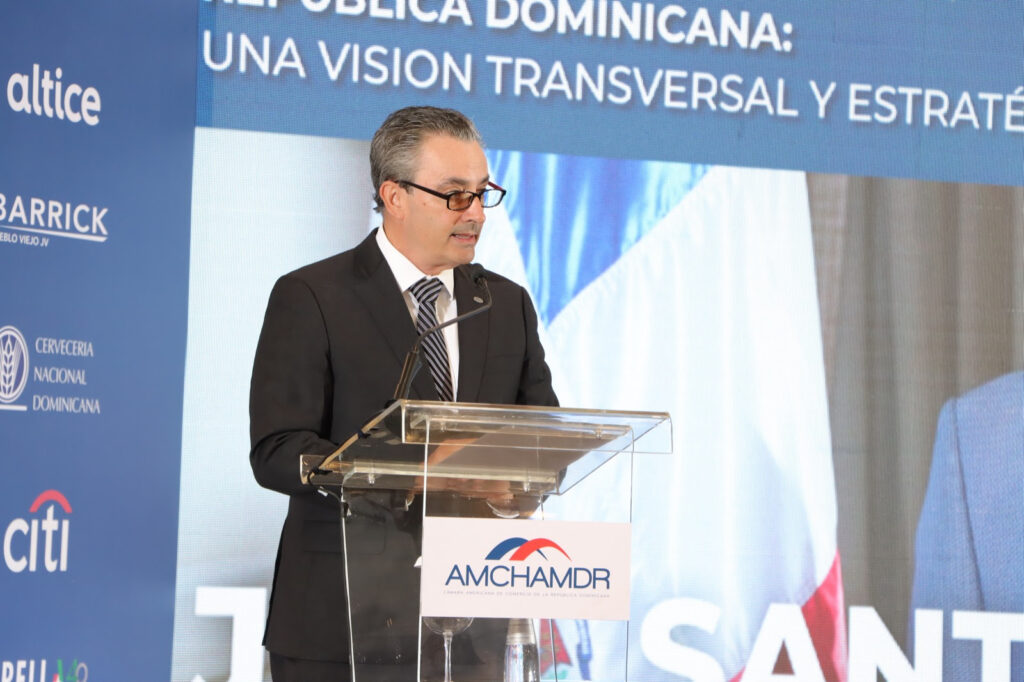 Durante su participación en el almuerzo organizado por la Cámara Americana de Comercio de la República Dominicana (AMCHAMDR), el ministro Santos mostró la visión estratégica y acciones que lleva a cabo el Gobierno para eliminar las barreras que históricamente han limitado el desarrollo sostenible de nuestra economía.
