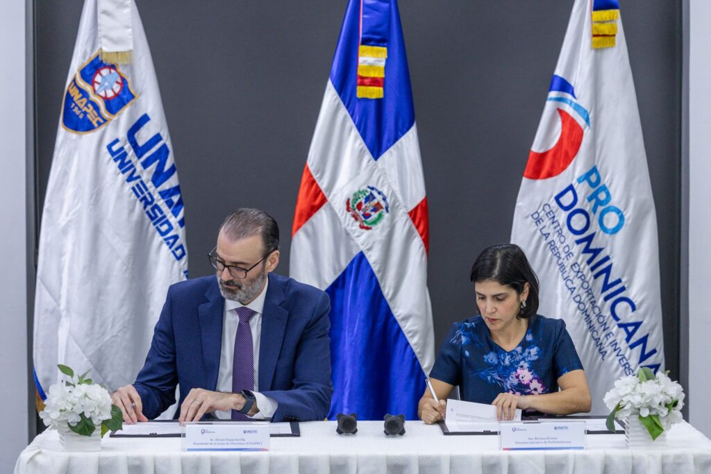 El acuerdo fue suscrito por Biviana Riveiro Disla, directora ejecutiva de ProDominicana, Alvaro Sousa Sevilla, presidente de la Junta de directores de Unapec.