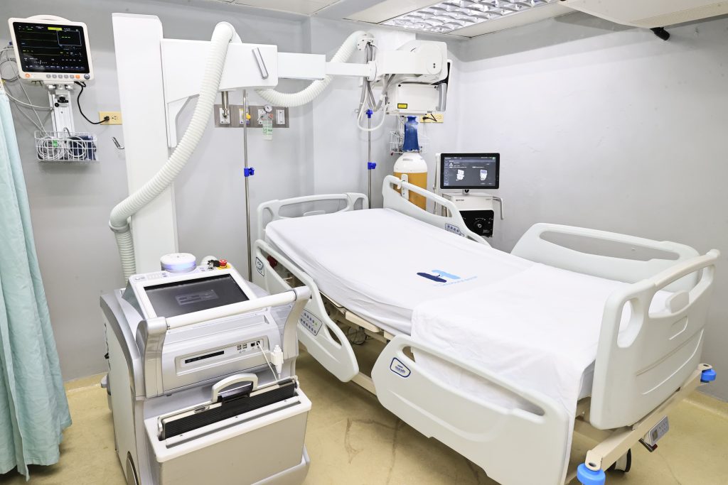 Precisó que para habilitar el área, el SNS entregó un Rayos X digital portátil, cuatro camas de cuidados intensivos, un carro de paro, un desfibrilador con monitor y paletas externas, cuatro monitores de signos vitales, un negatoscopio de dos campos y dos ventiladores adulto pediátrico, equipos valorados en RD$7,920,515.15.